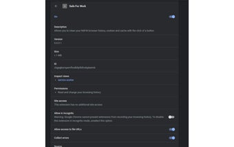 Safe For Work เป็นส่วนเสริมของ Chrome ที่พัฒนาโดย akib.rhast โดยเครื่องมือฟรีนี้มอบความสามารถให้ผู้ใช้สามารถทำควาสะอาดประวัติการเรียกดูบนเบราว์เซอร์ที่ไม่เหมาะสม (NSFW) คุกกี้ และแคชได้อย่างง่ายดายด้วยการคลิกเพียงครั้งเดียว คุณสมบัตินี้สามารถมีประโยชน์อย่างมากสำหรับบุคคลที่ต้องการรักษาความเป็นส่วนตัวของการเรียกดูของตนและให้ความมั่นใจว่าข้อมูลที่ละเมิดไม่ได้เก็บไว้ในระบบของพวกเขา